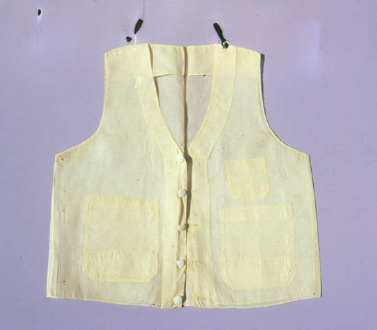 여름철 옷감인 노방을 사용하여 홑으로 지은 조끼. 1900년 무렵 서양복식의 영향을 받아 입게 되었는데, 저고리 위에 덧입어 윗옷의 매무새를 정리함. 왼쪽 앞길에는 2개, 오른쪽에는 1개의 주머니를 달아 소지품을 넣을 수 있게 함.