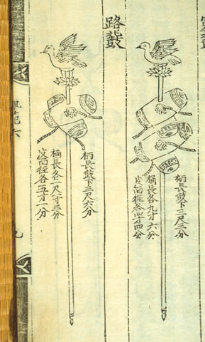 아악(雅樂)에 사용되는 북 가운데 하나. 제사 때 헌가(軒架)에 편성되는데 헌가의 음악이 시작되기 전에 이 노도를 세 번 흔든 다음, 축(祝)과 진고(晉鼓)를 세 번 치고 나면 음악이 시작된다. 사진은 (
